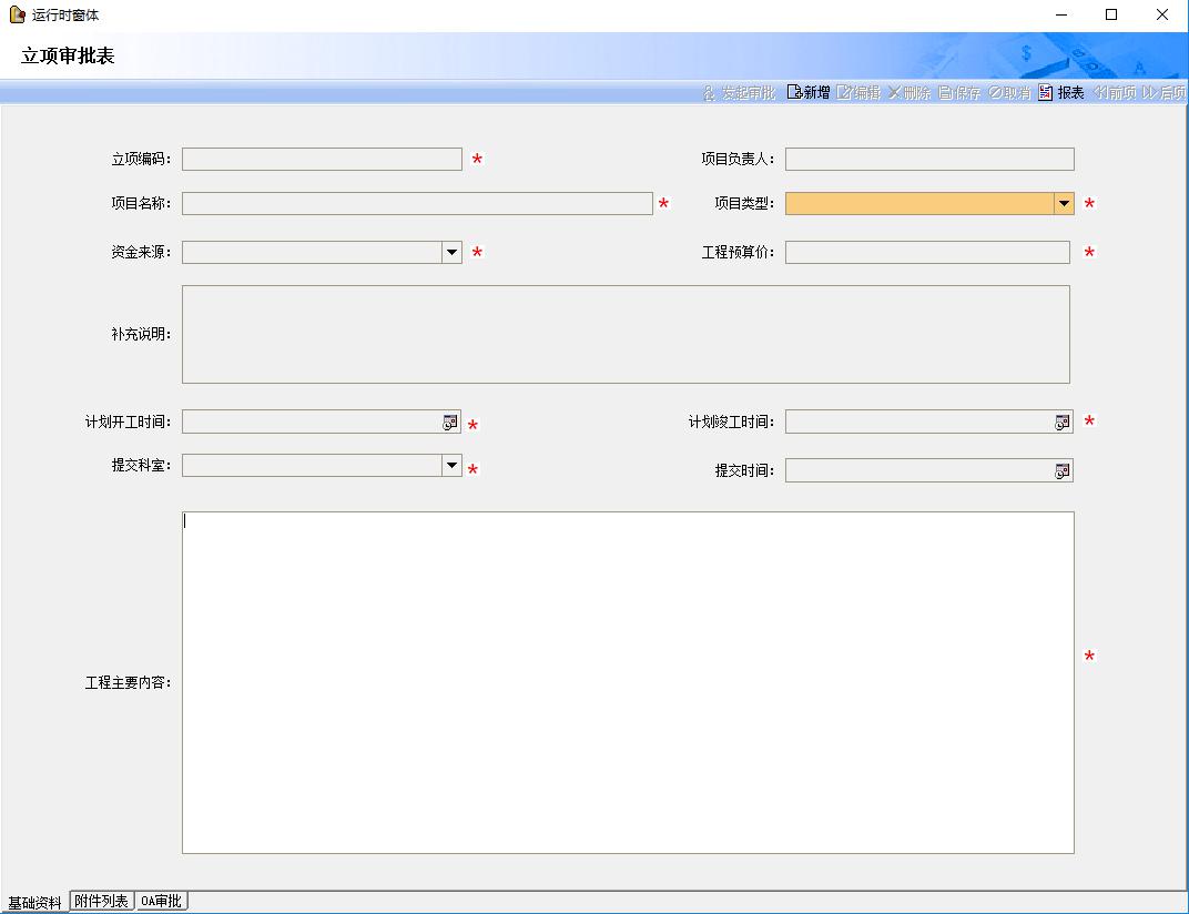 输入修缮工程的名�U�、编码、资金来源、项目负责�h、工�E�预���、工�E�主要内容等工程立项信息�Q�通过审批����{后完成立��工作�?/p>